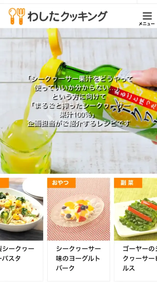「基本のレシピ」や「ちょっとごちそう」、「春夏秋冬メニュー」など、料理の段階やその時期にぴったりのシークヮーサーレシピをお楽しみください。
