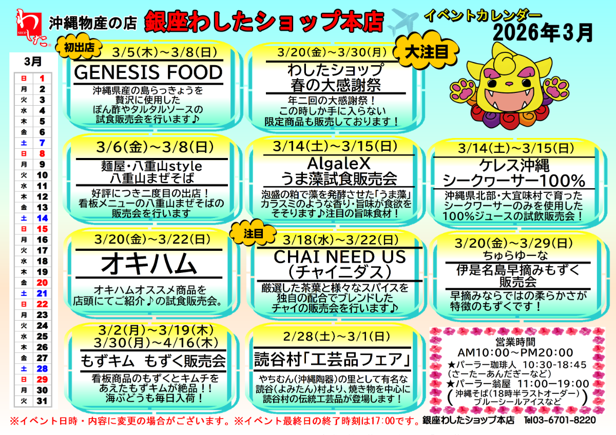 また、3月は海開きや沖縄花のカーニバルなど温暖な沖縄を楽しめる多くのイベントが開催されます。