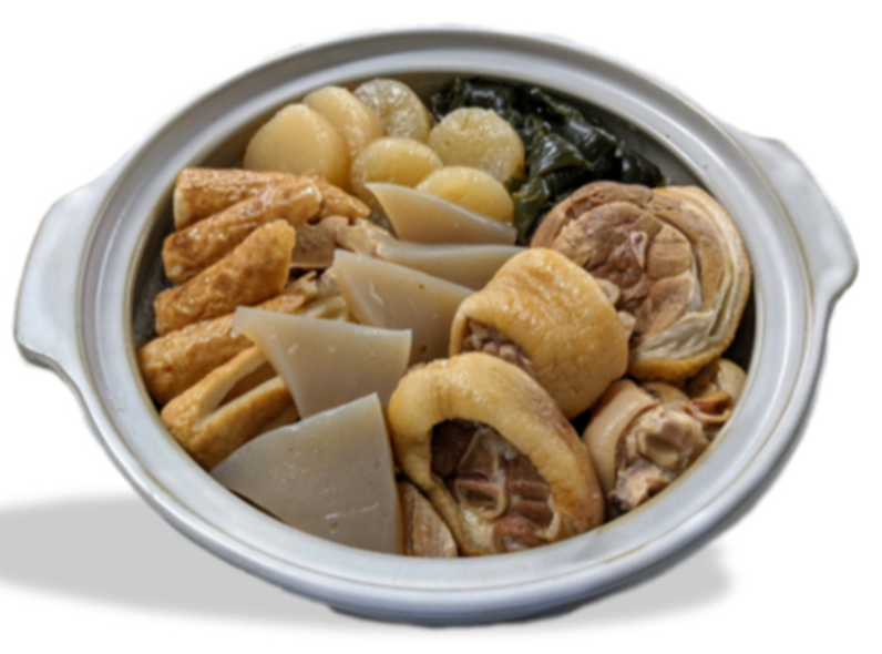 かつおと昆布の出汁に、てびちから出る出汁が加わり、おでんの定番の大根やこんにゃくなど具材の味を引き立たせています。